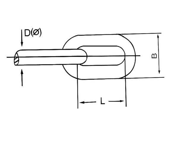 鏈徑 D | 內(nèi)長 L | 外寬 B | 拉力負(fù)荷 | 破斷負(fù)荷 | 重量 | ||