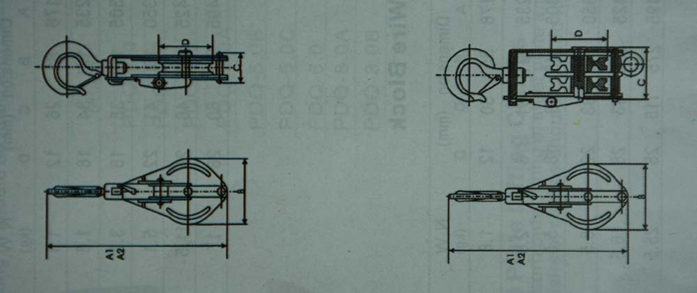 Type | S.W.L. | Sheave dia | Dimension(mm) | For wire dia | N.W | ||||