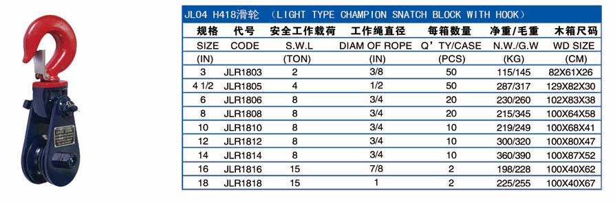 TypeHook | S.W.L. | Sheave DlaD | A2 | B | C | For WIRE Dia | N.W. |