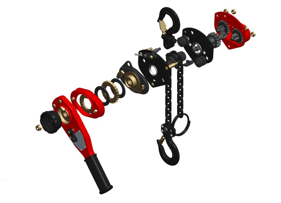 Model | W.L.L(t) | LIFT(m) | Proof Load(KN) | Lever Force kg(n)(ibs) | Load Chain | Dimensions(mm) | N.W.(kg) | ||||||
